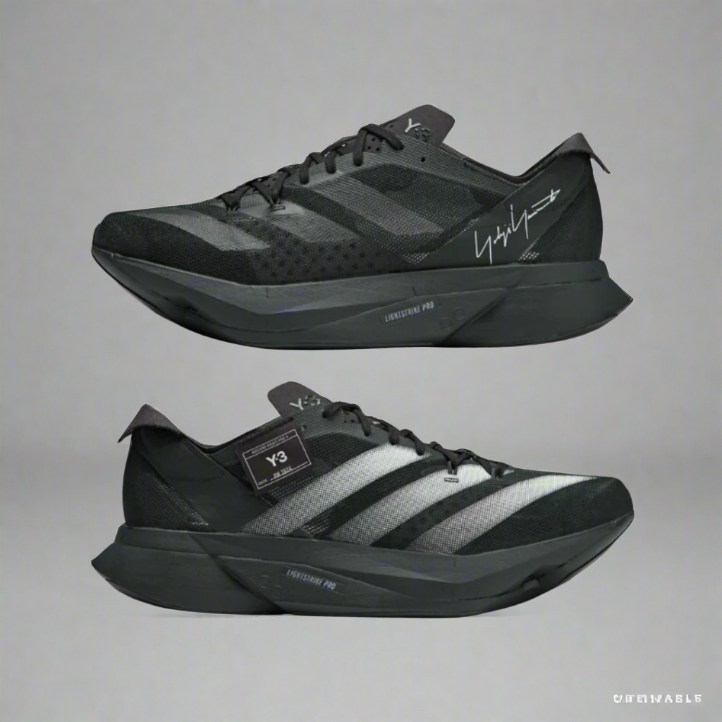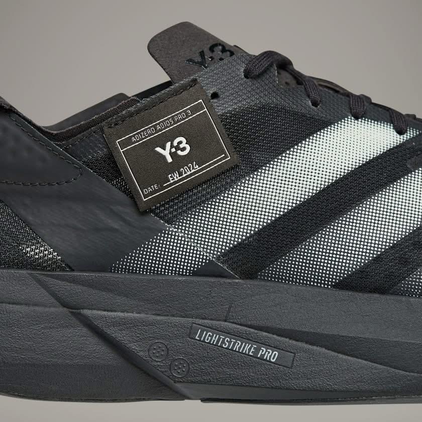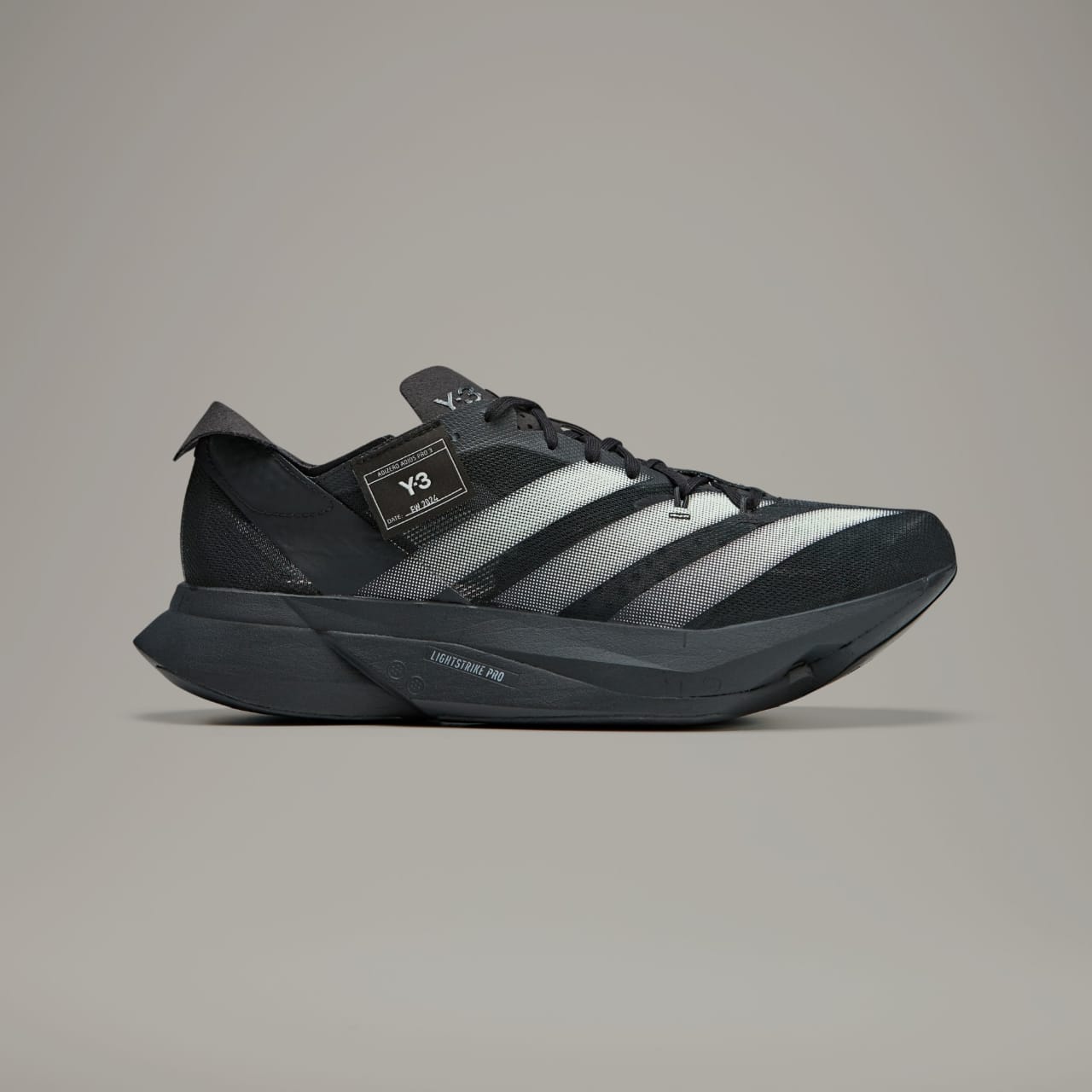 The Y-3 Adios Pro 3 Shoes take cues from their adidas counterpart, but forge a path all their own. A color update plus two fade-effect elements mark their Y-3 identity: Yohji Yamamoto's signature on the left shoe and 3-Stripes on the right. With a sleek, futuristic profile, they're built with ultralight Lightstrike Pro foam for a superlight midsole that helps increase speed. Carbon-infused ENERGYRODS propel momentum forward.