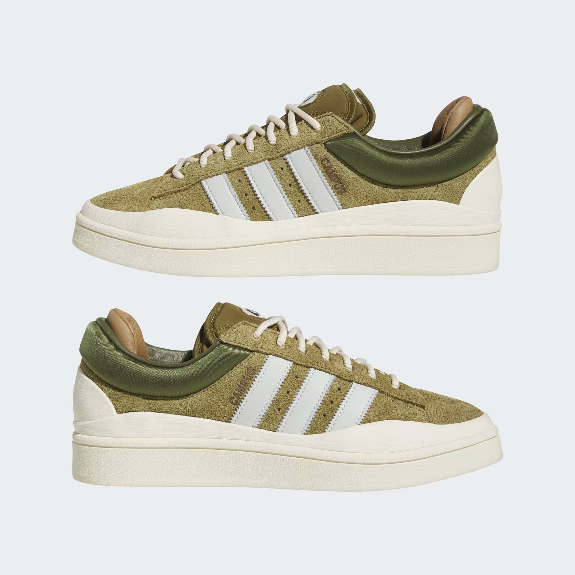 The Bad Bunny Campus in Wild Moss brings bold personality to a classic adidas silhouette. With its rich green tones, premium materials, and reworked proportions, this sneaker delivers a fresh take on a timeless design — blending street culture, music, and fashion into one iconic release.