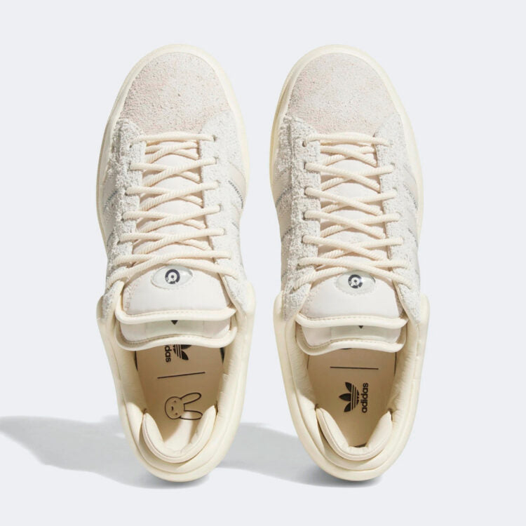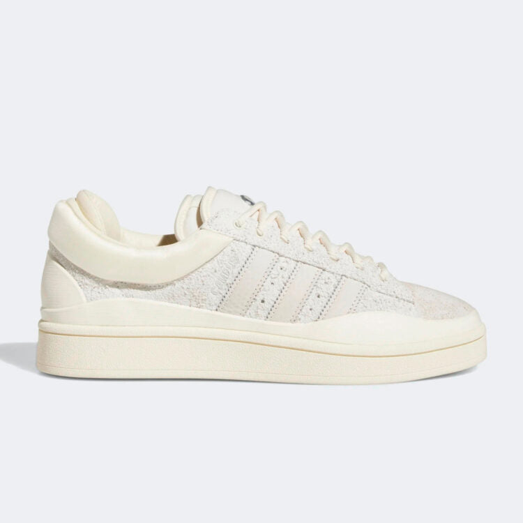 Description: Bad Bunny modifies the shape of the classic silhouette which allows it to stand on its own. Collars have been beefed up with padded leather while extra overlays are stacked onto the heels and mudguards which equips the kicks with more dimension and a sleek aesthetic. Interiors are enhanced with an extra bootie, and the doubled-up tongues make a return. A “Cloud White” hue dresses up the shaggy suede quarter panels and toe boxes and comes offset by creamy hits that see through to every other panel on the base and the bottom pieces.