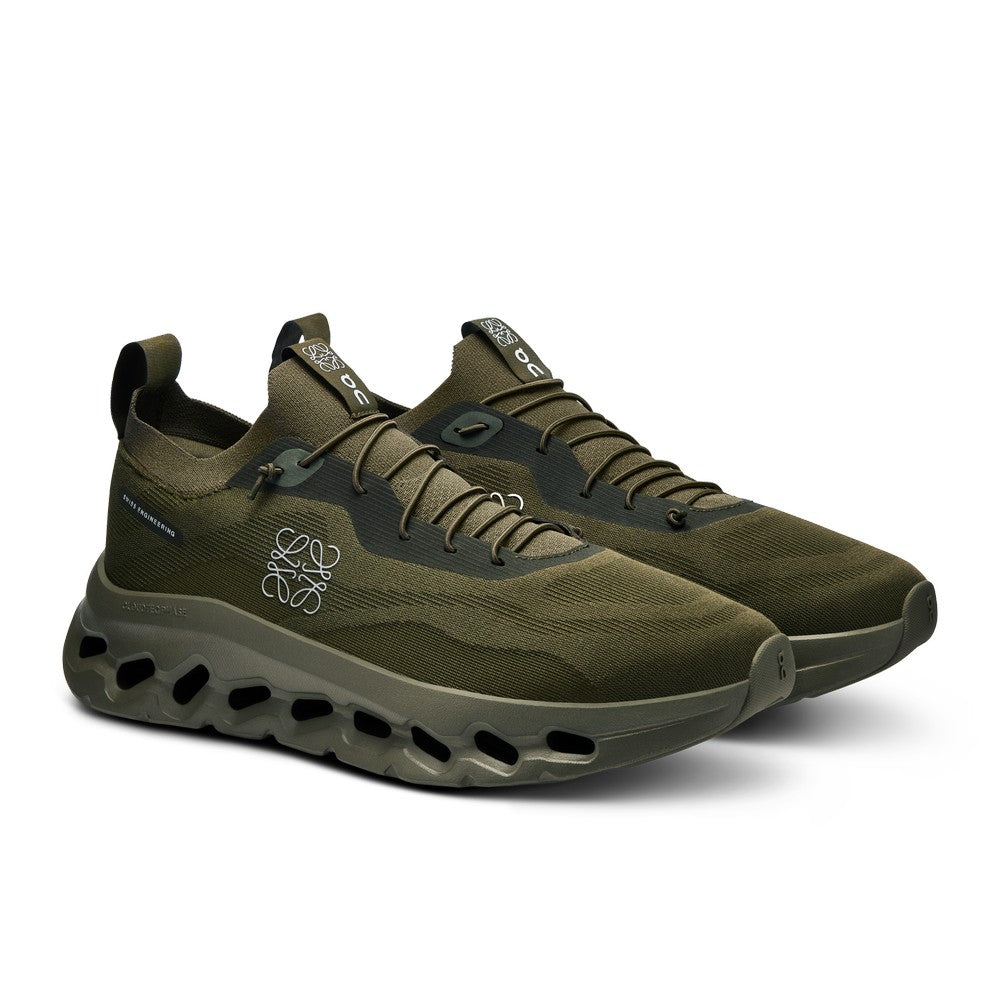✔ LOEWE’s Luxe Craftsmanship – Premium kaki green mesh and suede upper with refined detailing, including contrasting stitching and LOEWE's iconic Anagram logo.